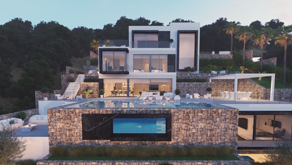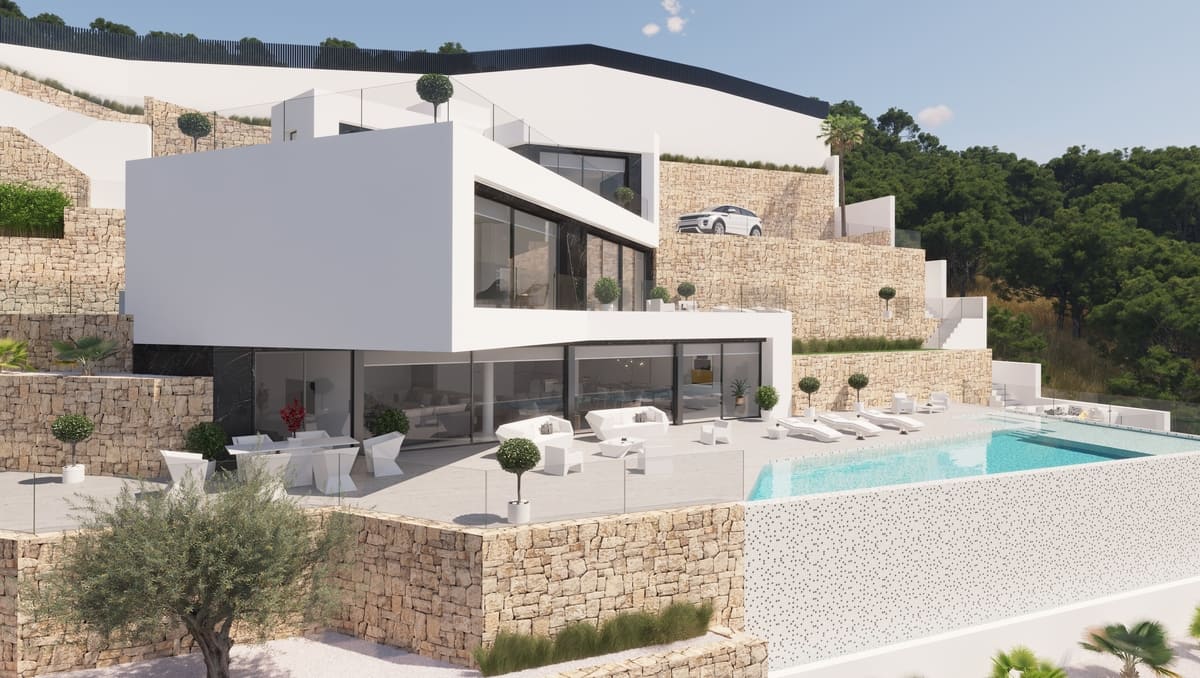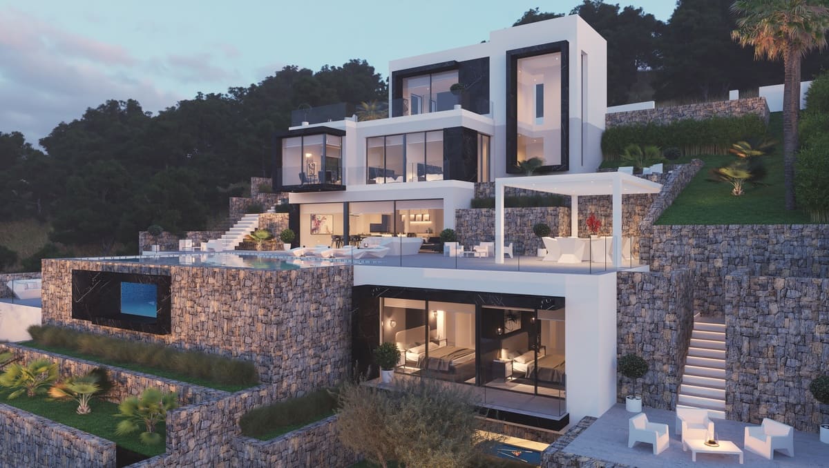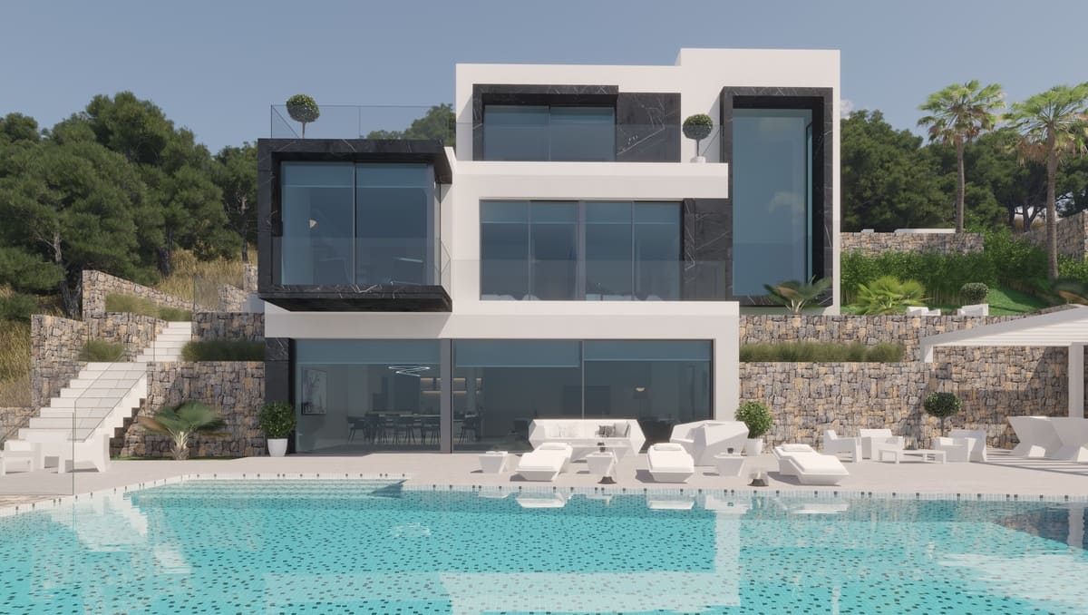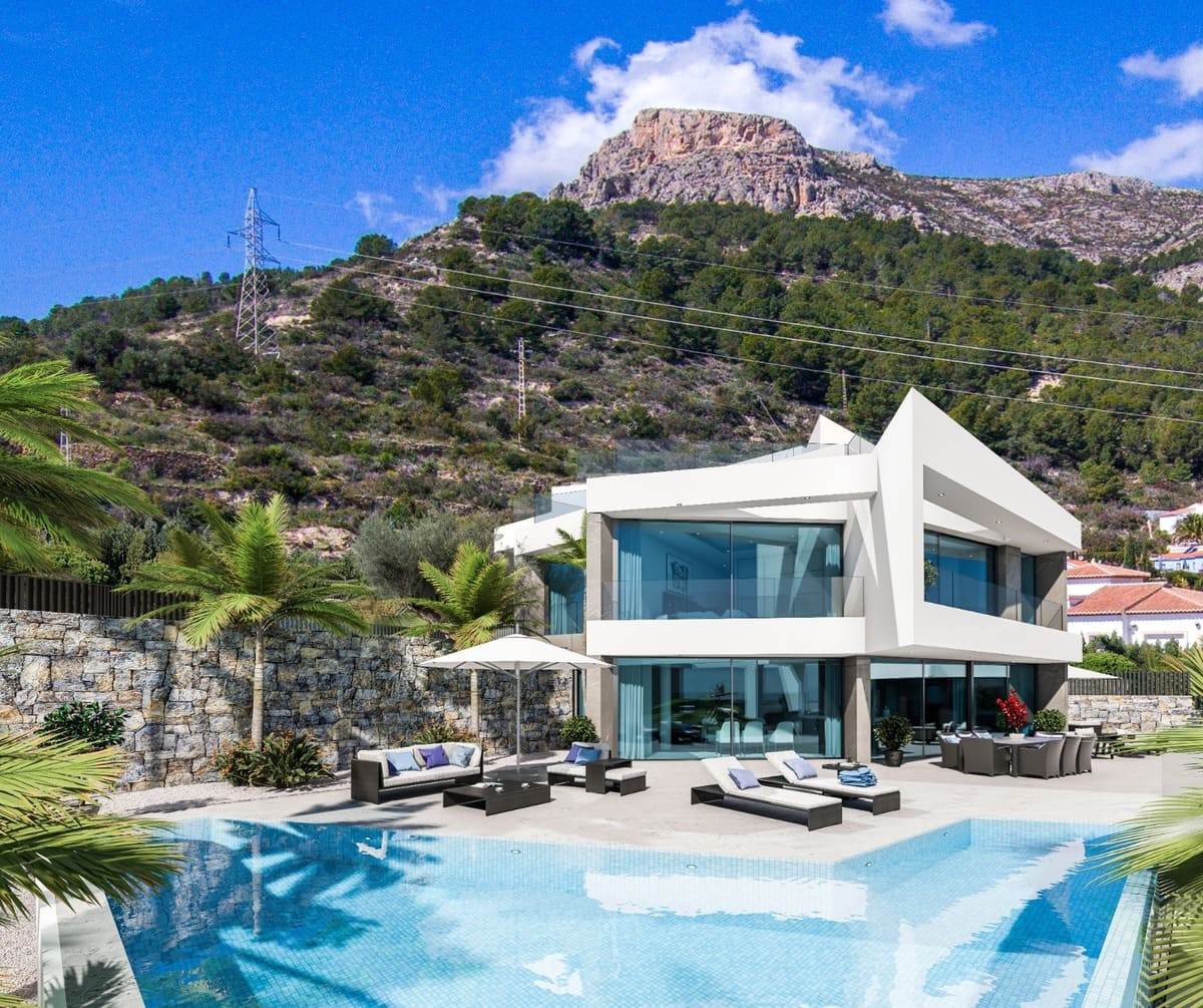 This house located on a hill with panoramic views towards the Sierra de Bernia, in Calpe, has been designed with the assistance of the most advanced software and the latest concepts of bioclimatic architecture, energy efficiency and sustainability.