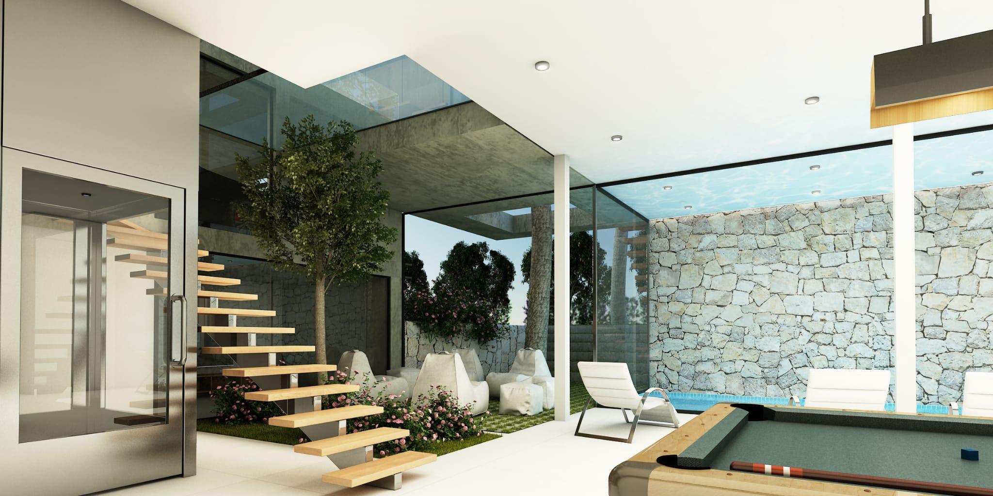 This villa designed on top of the mountain, facing the coast of Benissa, with spectacular views of the sea, is conceptually a viewpoint, where each environment offers a different perspective of the seascape.